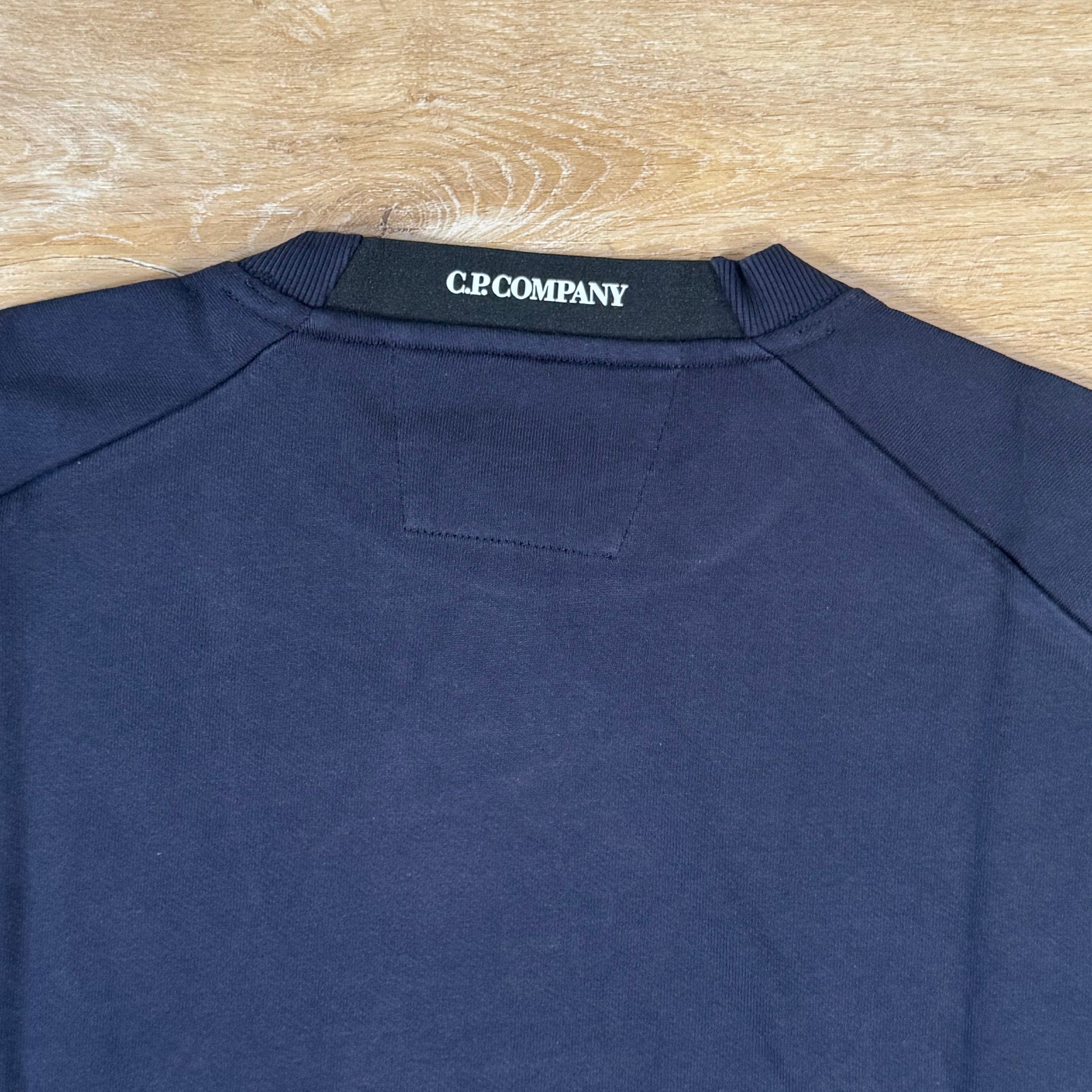 CP Company Diagonal Raised Fleece Crewneck Lens Sweatshirt in Navy