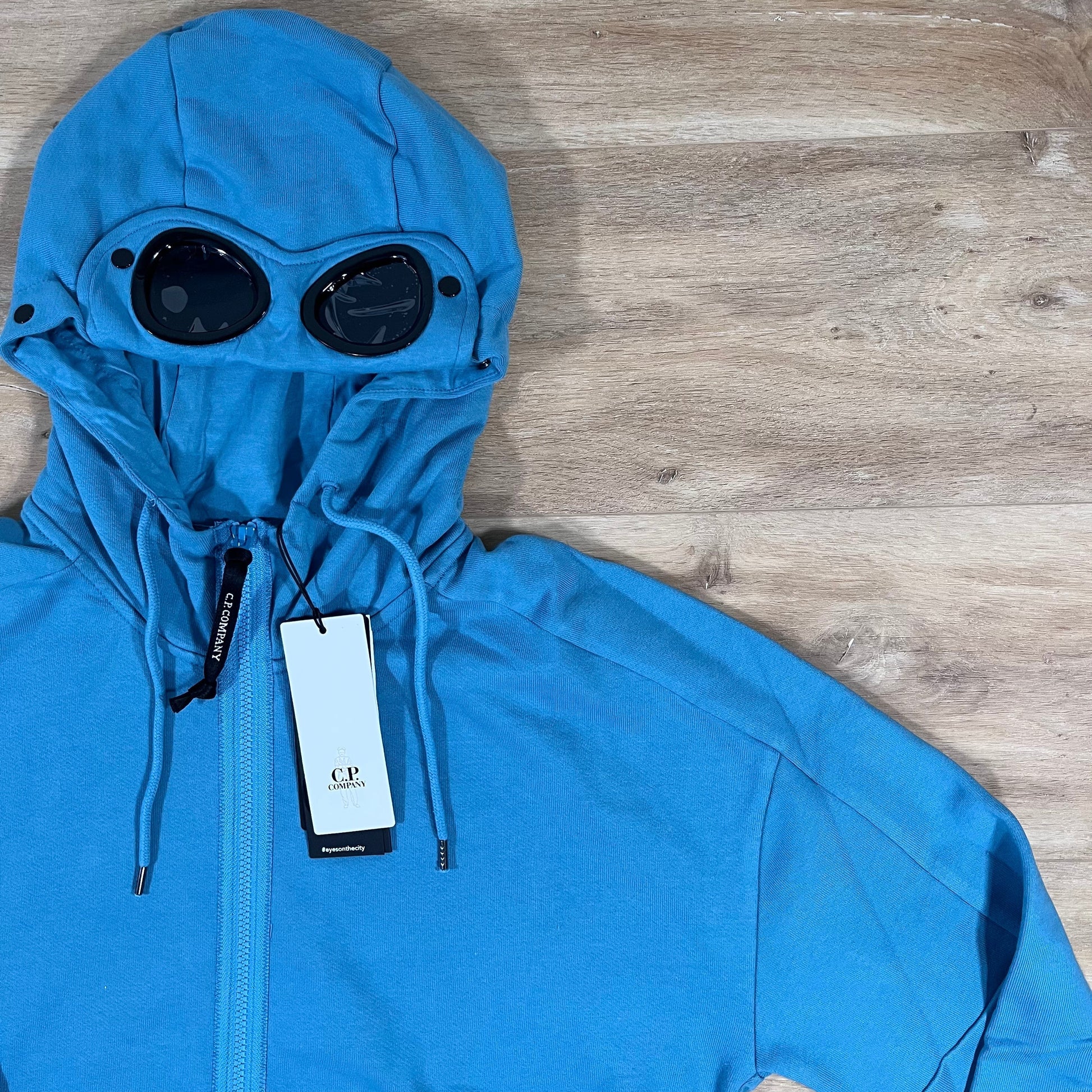 CP Company Diagonal Raised Fleece Goggle Hoodie in Aegean Blue