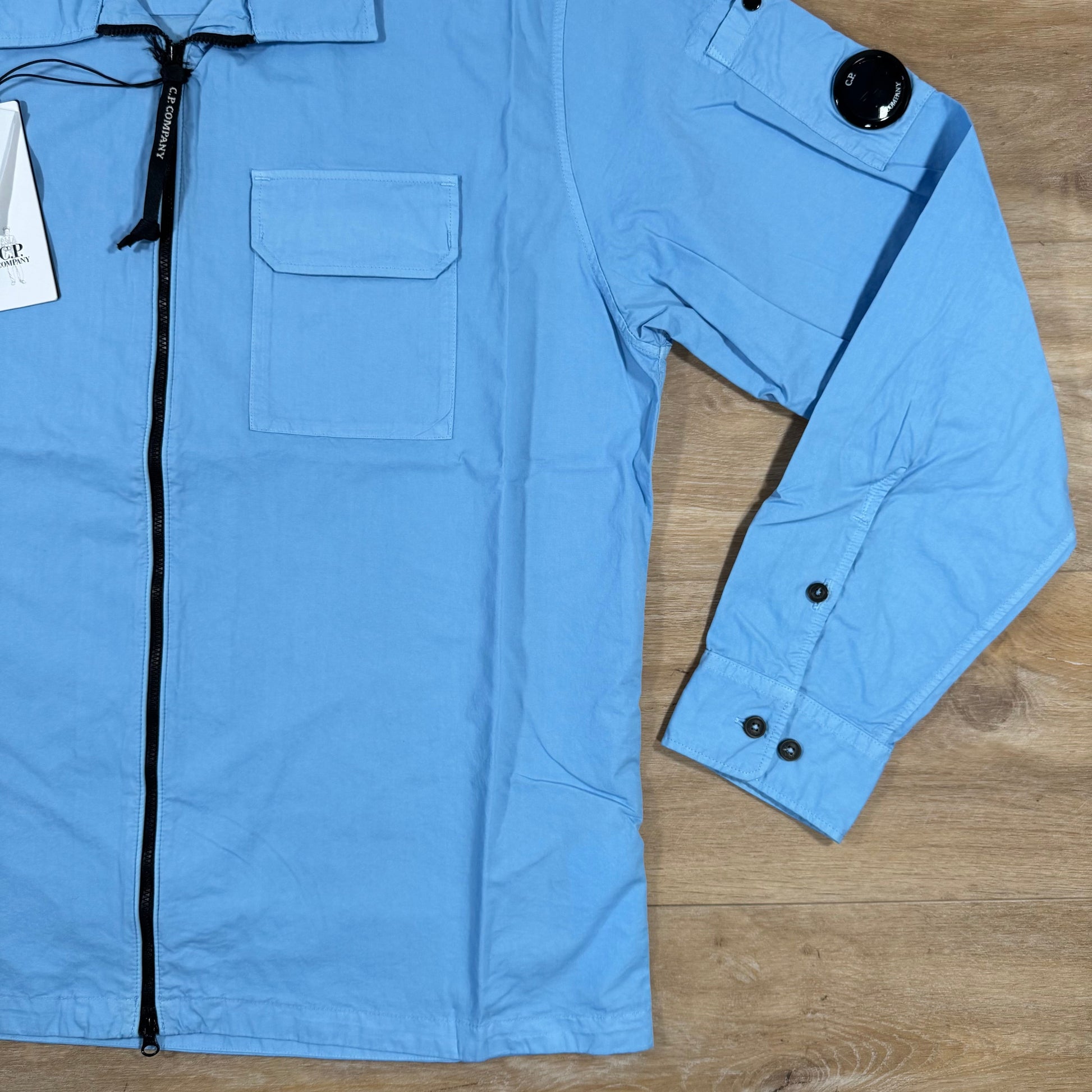 CP Company Organic Gabardine Lens Overshirt in Cerulean - Light Blue