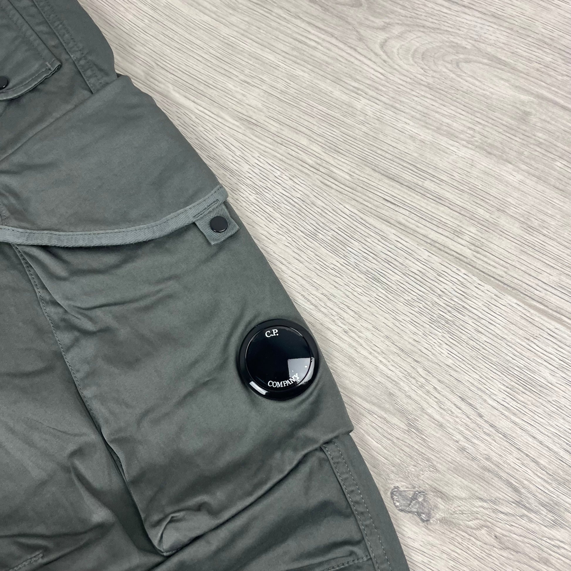 Smoked Pearl CP Company cargo trousers with double bellows pocket and lens