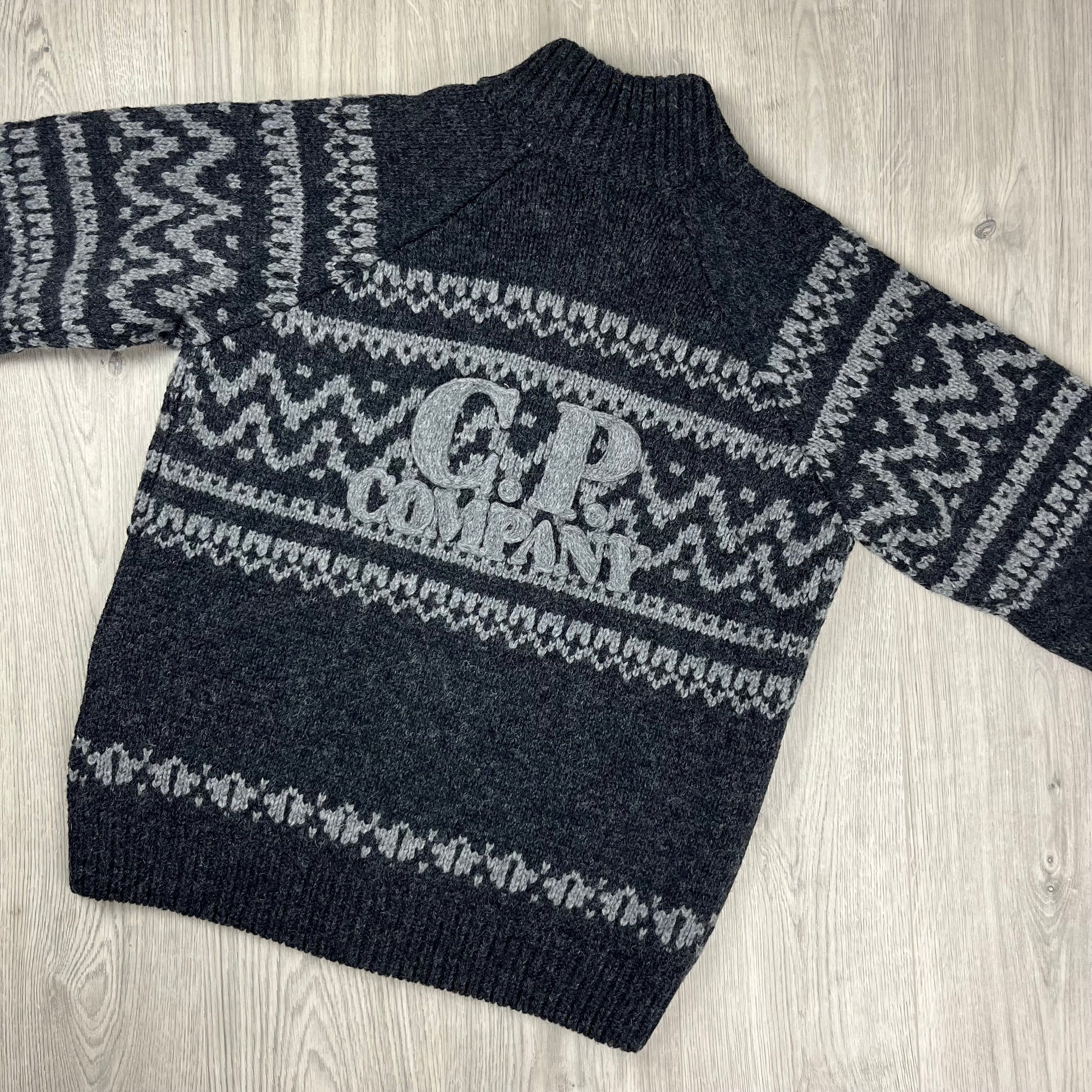 VAR 02 Black and grey CP Company jacquard wool zip fleece with knitted logo on the back