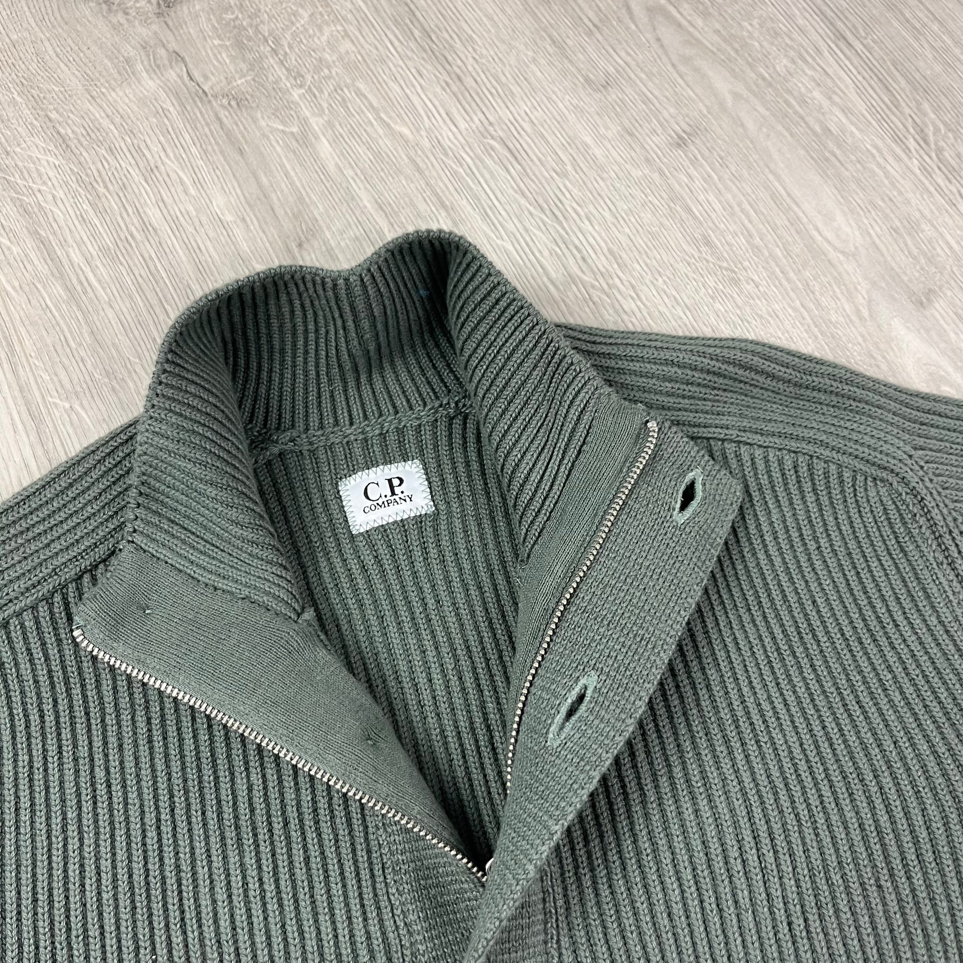 Gunmetal CP Company 1/4 zip fleece in full rib with sleeve lens