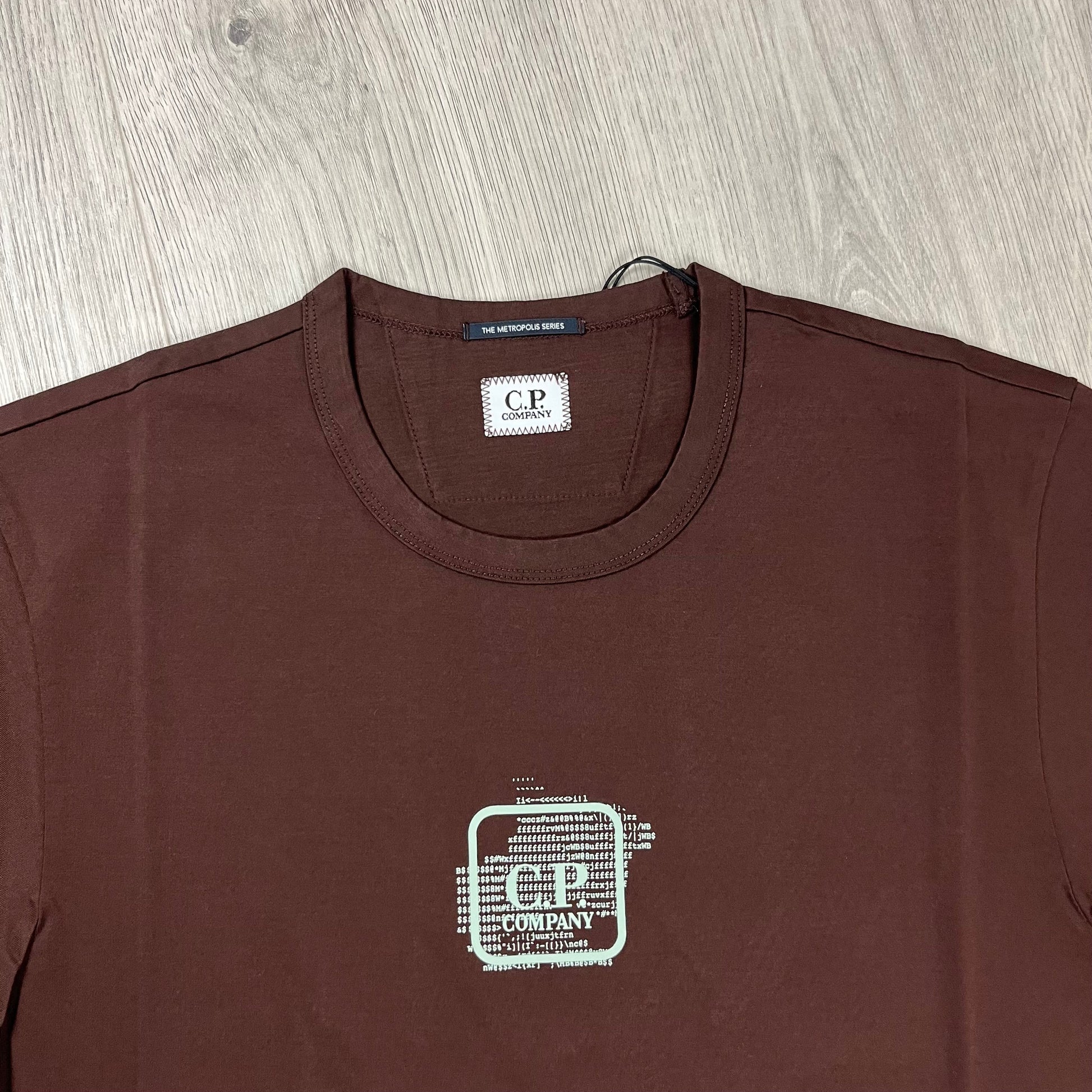 Rum Raisin CP Company Metropolis T-shirt with blurred centrally printed logo on the chest and large blurred graphic on the back