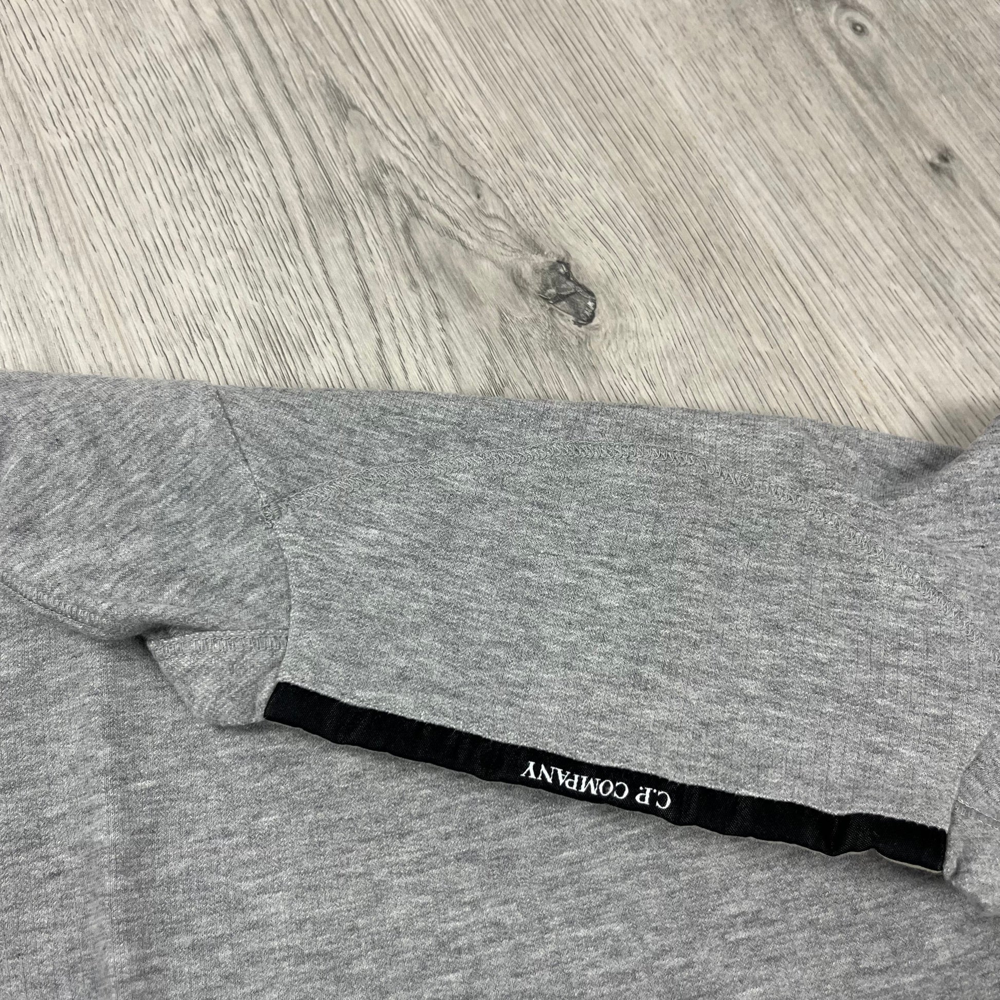 Grey Melange CP Company garment dyed sweatshirt with white printed logo across the chest