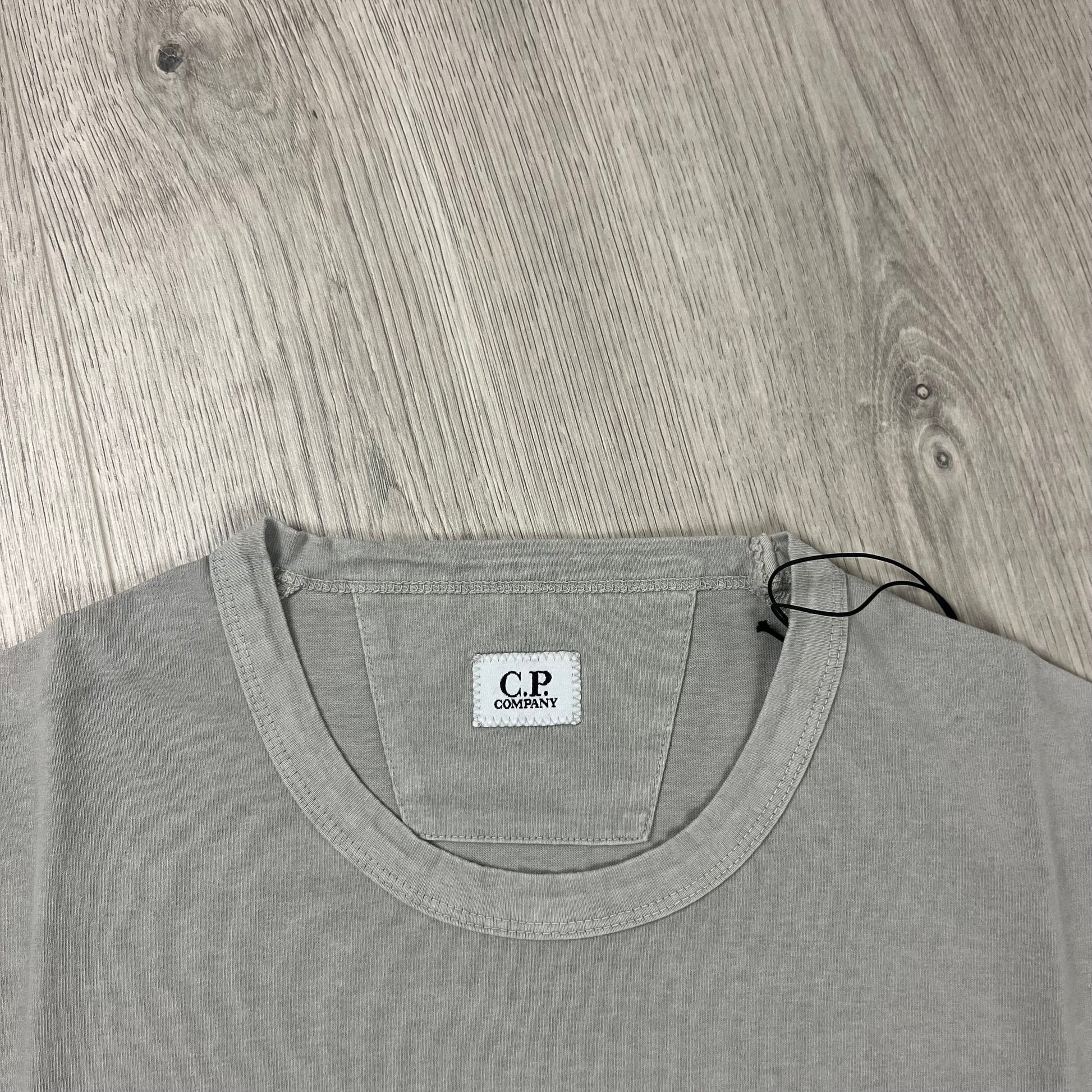 Drizzle Grey CP Company T-shirt with centrally printed logo in white with three sailors.