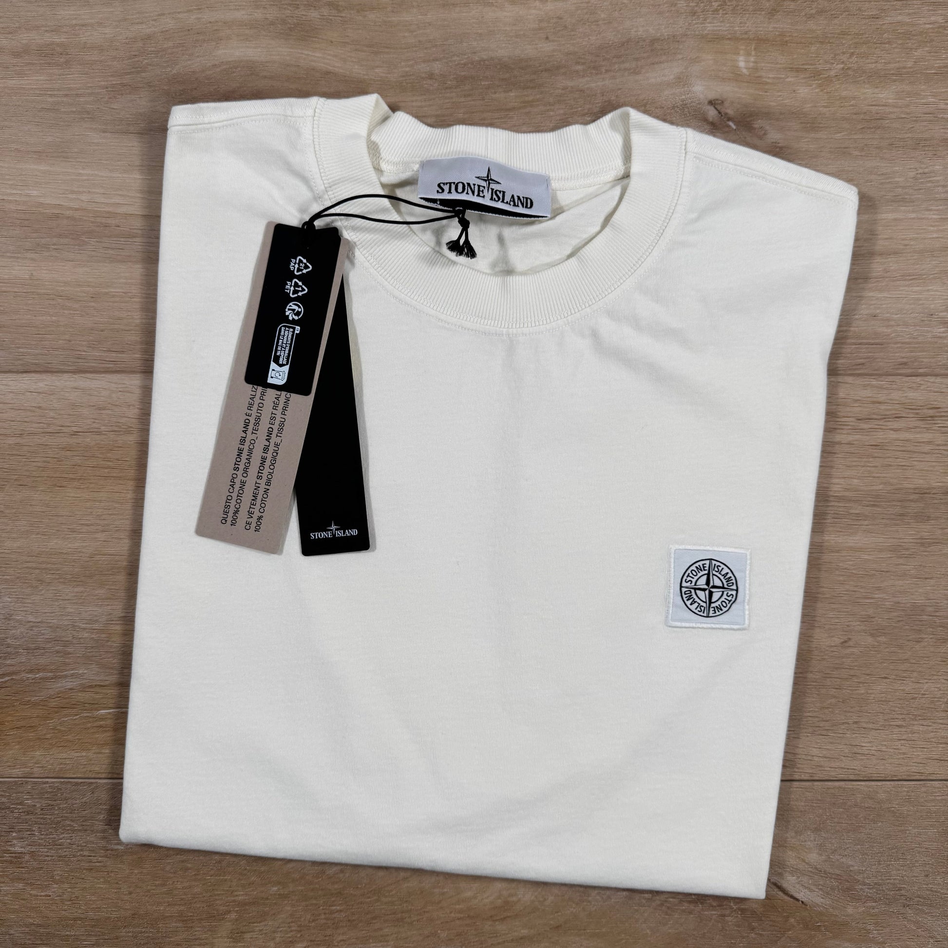 Stone Island Combed Organic Cotton Patch Logo T-Shirt in Ivory