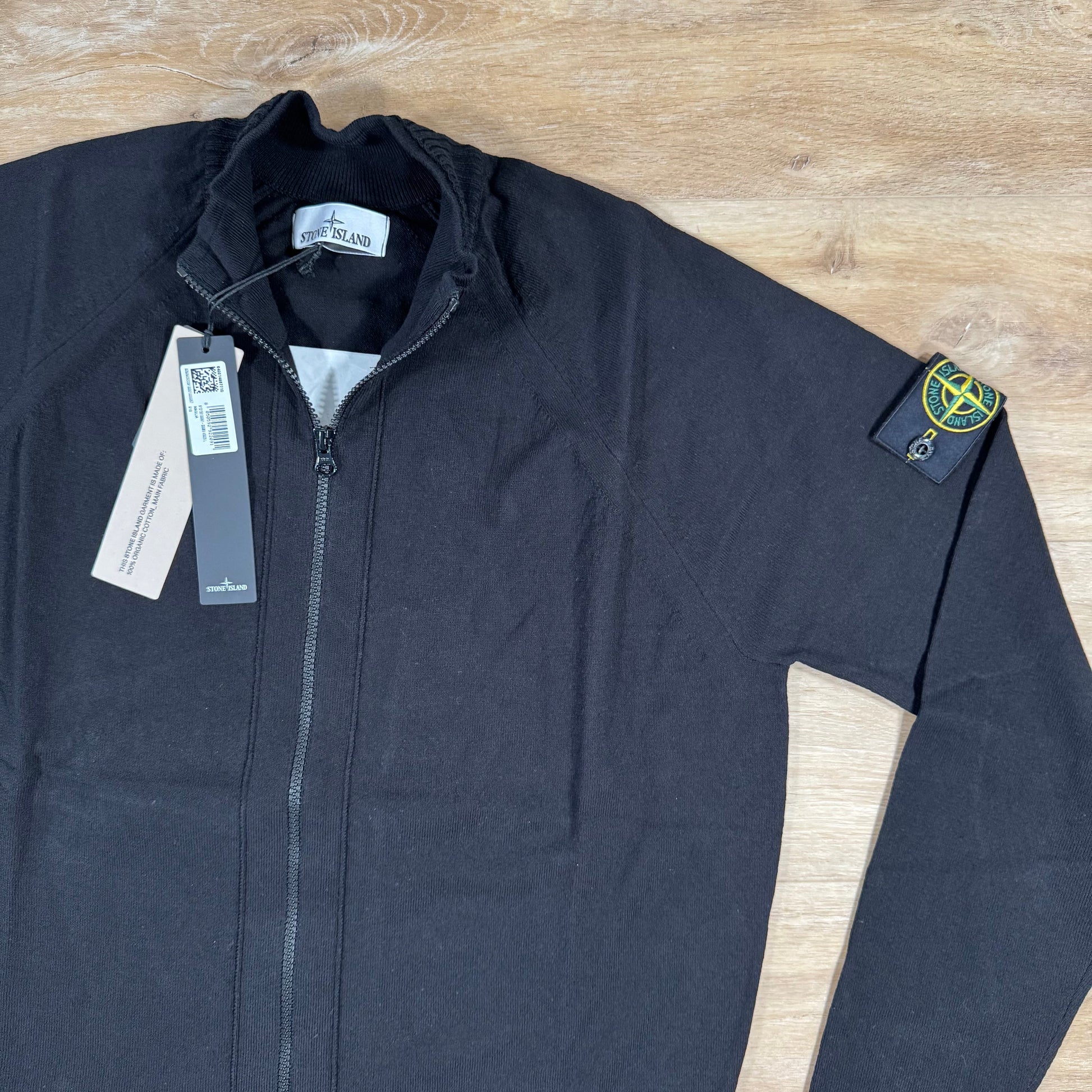 Stone Island Light Organic Cotton Knit Cardigan in Black