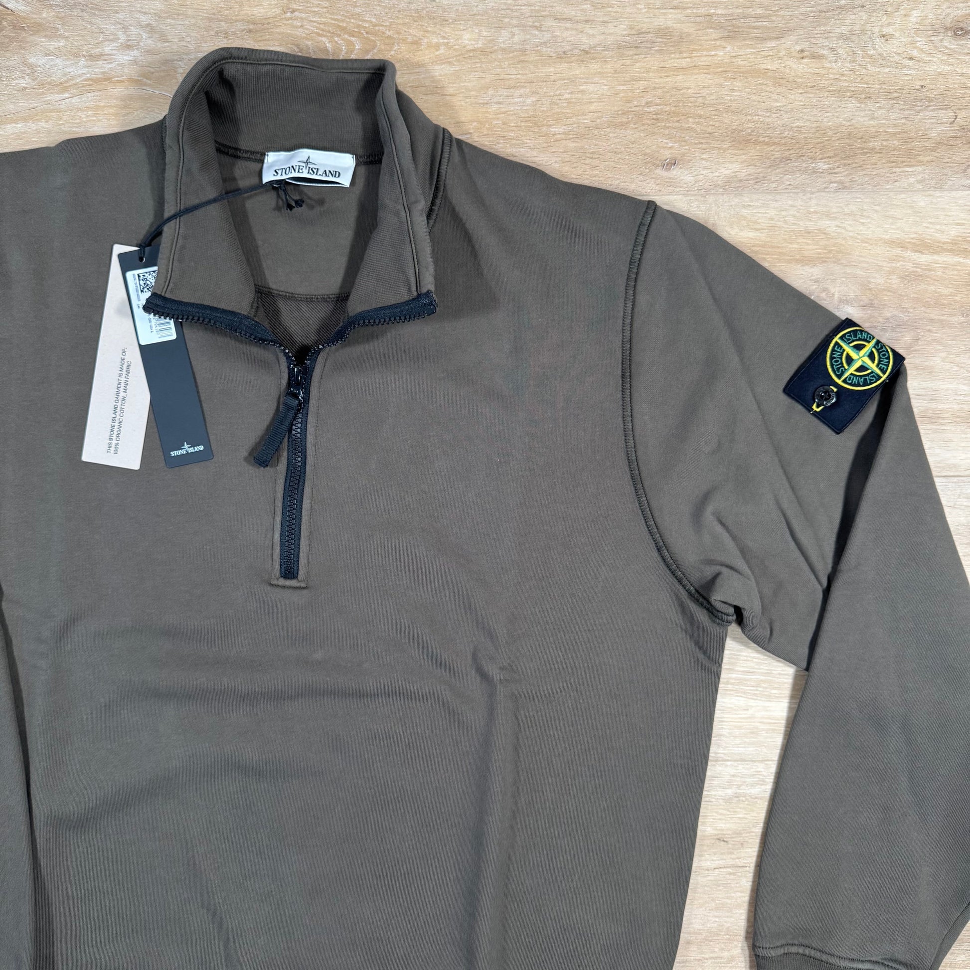 Stone Island Organic Cotton Half-Zip Sweatshirt in Military Green