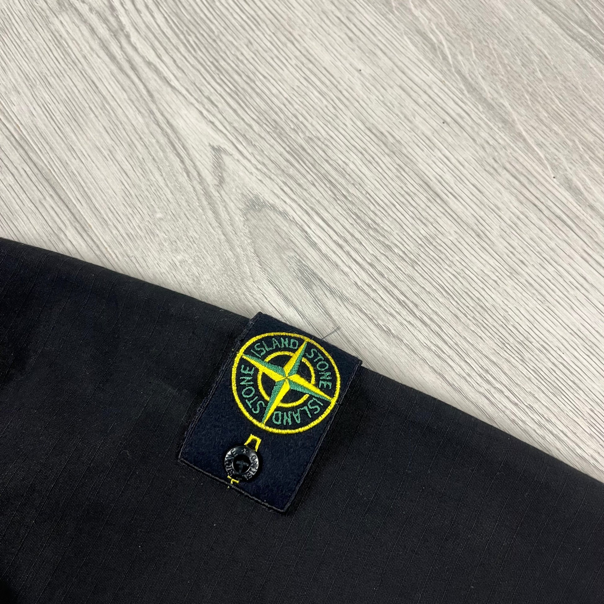 Men’s Stone Island heavy duty cotton overshirt in black with sleeve badge and duel pockets