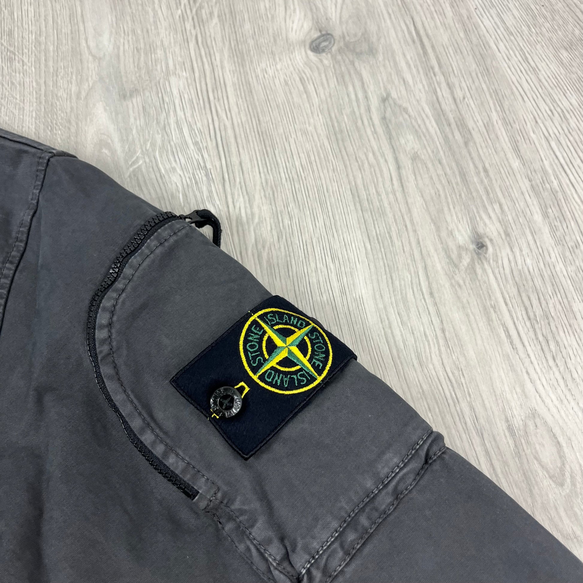 Men’s Stone Island cotton overshirt in Charcoal Grey with sleeve badge and zip pockets